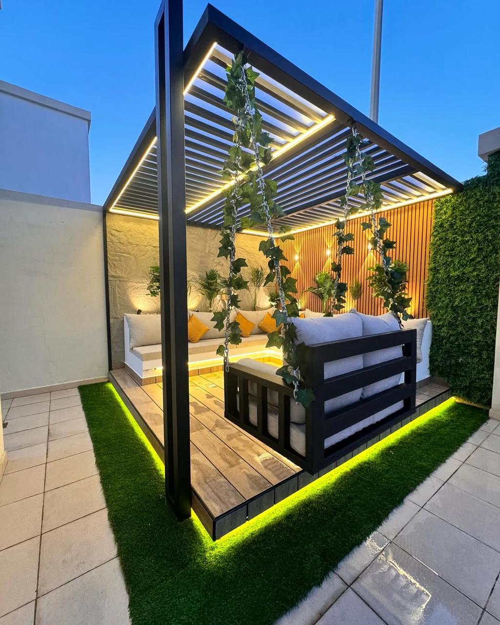 متخصصون في تصميم وتنسيق الحدائق المنزلية، تنفيذ البرجولات والجلسات والغرف الزجاجية، وعمل الديكورات والتشطيبات من بديل الرخام وبديل الخشب والشيبورد. نغيّر ونطوّر حديقتك بمناظر خلابة وإبداع فريد.