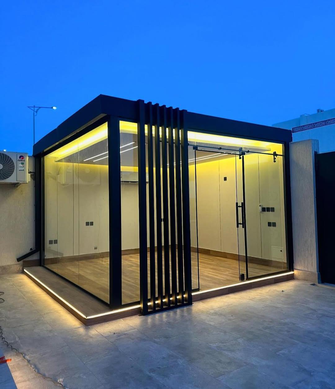 تصميم وتنفيذ مظلات وغرف زجاجية بأحدث التصاميم. مواد مقاومة للعوامل الجوية، تركيب سريع ومتقن، وضمان شامل.