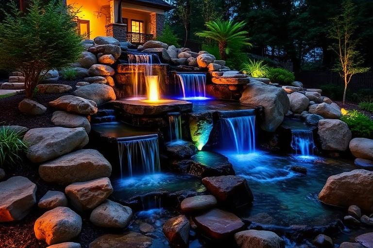 تصميم وتنفيذ نوافير وشلالات مائية بتصاميم فريدة. إضاءة LED مدمجة، أنظمة مياه عالية الكفاءة، وتوفير استهلاك المياه.